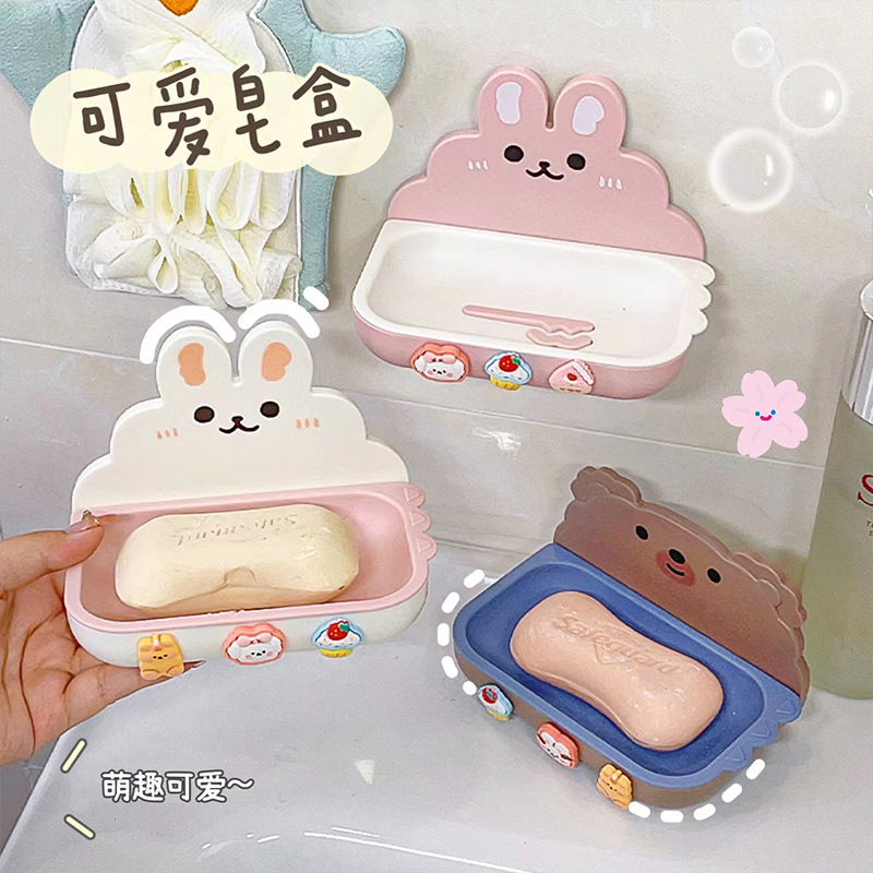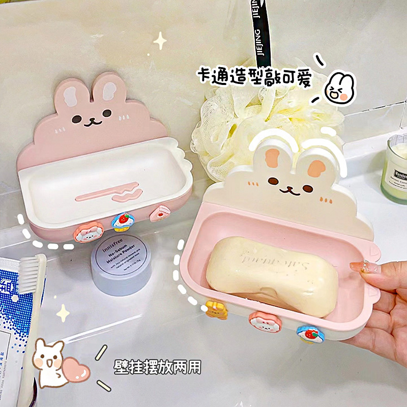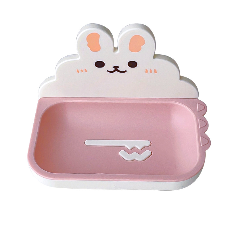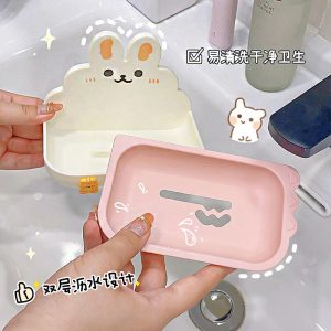 Cute Home Soap Box, Punch-Free Wall-Mounted Double-Layer Soap Draining Shelf for Bathroom with Drainage