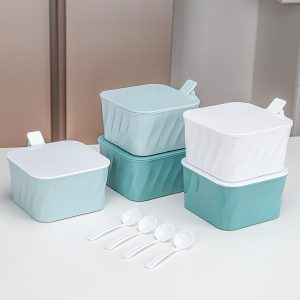 Four-Compartment Seasoning Box Set Kitchen Monosodium Glutamate Salt Canister Household Multi-Grid Condiment Box with Lid Storage Seasoning Box
